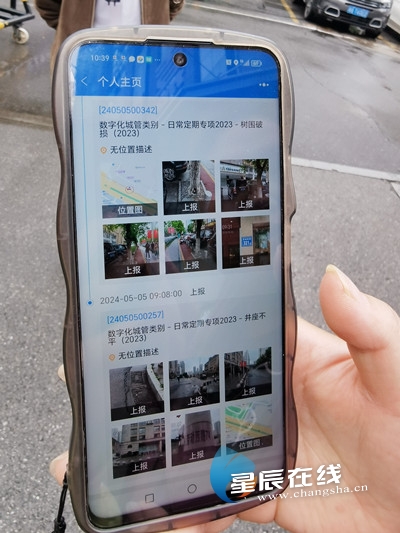 网格大意味着工作量也较大。江兰琼从早上七点半上班后就骑着自己的小电驴马不停蹄地来回穿梭,很快,在劳动西路上,她发现了一处树围破损。她熟练地拿出手机,围绕破损点上传了远景、近景等五张照片至长沙市城市管理监督指挥中心数字化系统平台。“指挥中心会对信息进行审核后派遣至相应的处置部门,处置部门在接收到处置任务后即安排人员第一时间进行处置。”