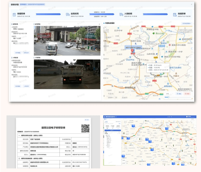 电子三联单管理:如同建筑垃圾的“电子身份证”,从装车、运输到消纳处理,全程扫码验证,实现可追溯管理;