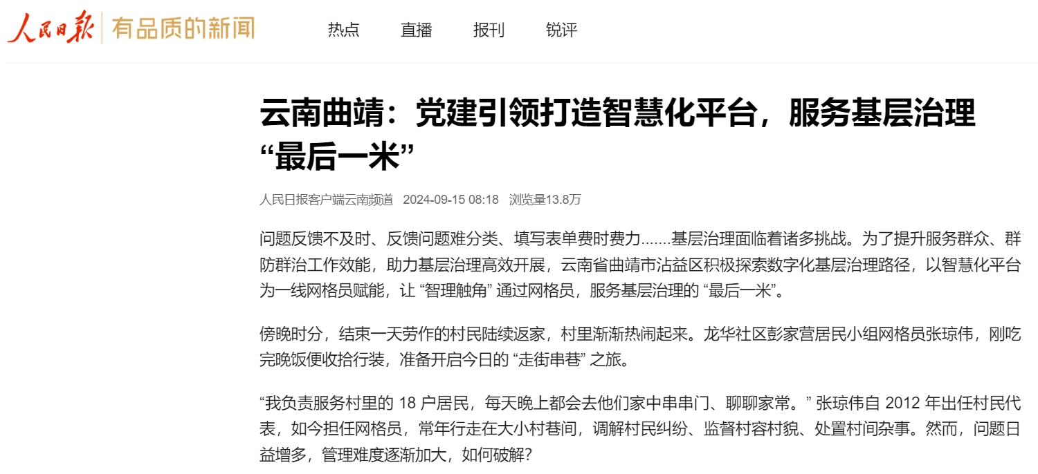 图元项目案例登《人民日报》| 云南曲靖:党建引领打造智慧化平台,服务基层治理 “最后一米”