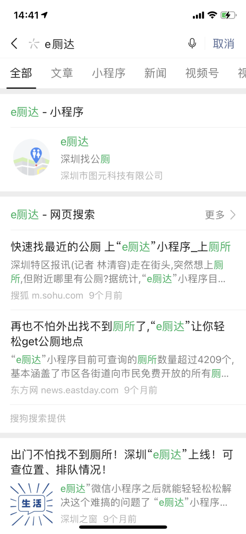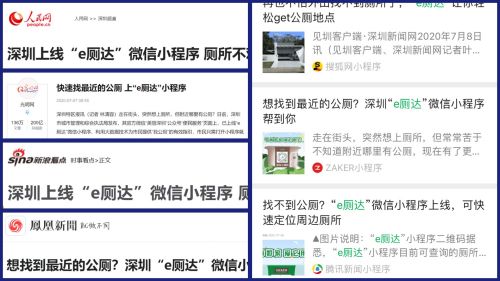 师兄还告诉小李,“e厕达”小程序其实在去年就上线了,自上线起,各媒体争相报道。该小程序由深圳市图元科技有限公司研发,携手深圳市环卫主管部门,大力推进“厕所革命”,解决大家“如厕难,难如厕”的困扰。深圳财经《深圳直通车》栏目也多次邀请图元科技进行现场采访录制,希望大家多多关注与收藏,给更多市民带去便利,以应对不时之需。