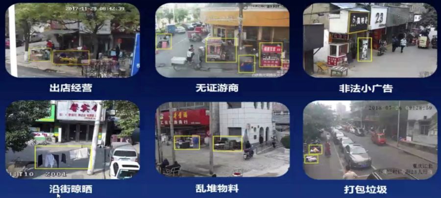 图元基于城市与城乡结合部全要素视频智能分析的业务场景需要,通过智能算法,建立可视化场景业务中心,国家标准中5大类部件和6大类事件问题,都已涉及,已实现分析的近60类,覆盖城市管理60%以上的常见案件类型。
